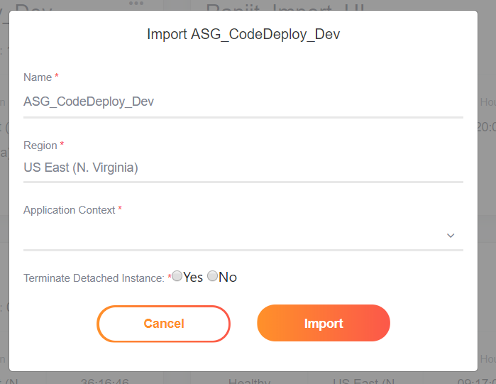 Click on 'Import' . The Import Auto Scaling Group dialog opens up